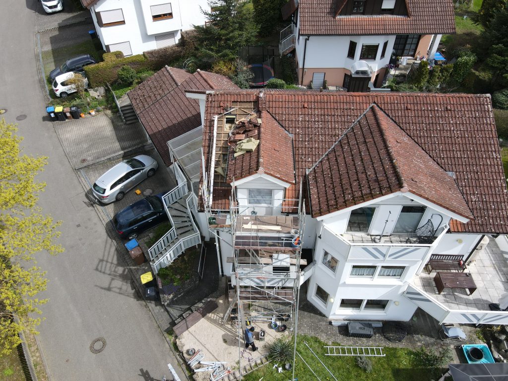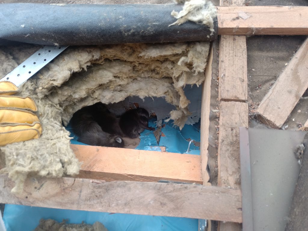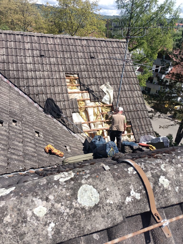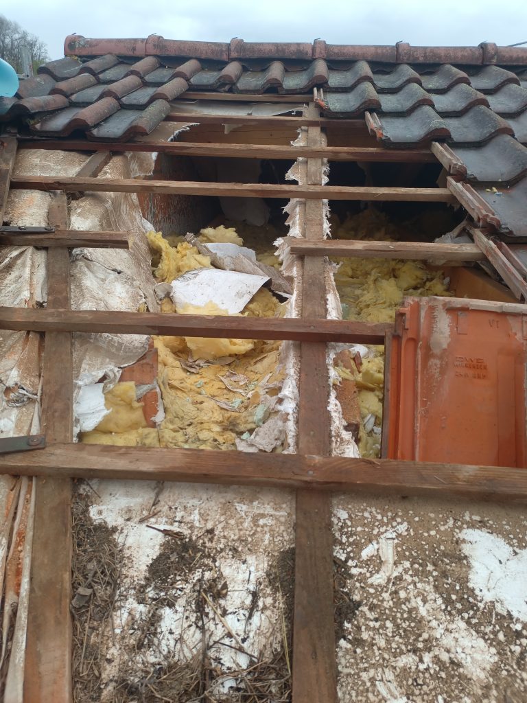 Zugang vom Video ins Dach von innen gesehen. Deutlich zu sehen ist die zerstörte Dachisolierung. Schaden am Objekt waren rund 48.000,-€. Eine komplette Dachsanierung war erforderlich.